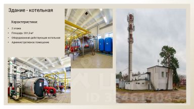 - Здание - котельная - площадь 331 м2, два этажа, котельная и офисное помещение, предоставляет услуги ГВС и теплоснабжения в соседнее ЖК