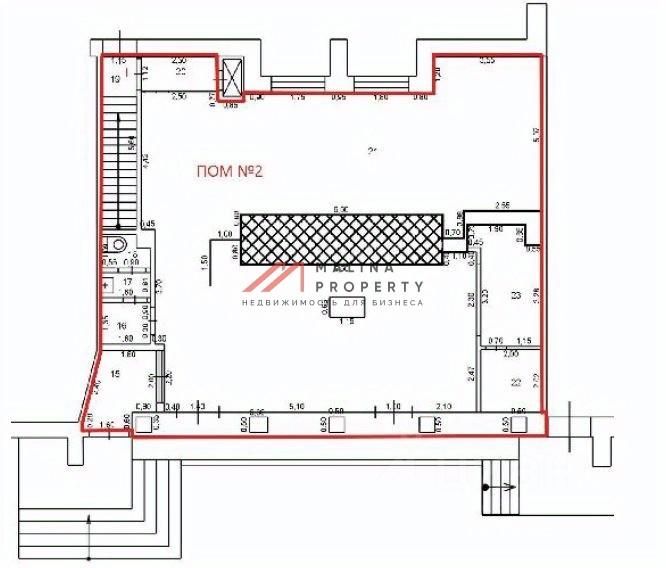 Помещение общей площадью 258,6 м2. На 1 этаже 137 м2, в цоколе 121,6 м2, открытая планировка, отдельный вход с фасада, высота потолка 3 м, витринные окна по фасаду. Парковка перед фасадом. Место для размещения рекламы.