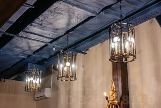 Стильная дорогая отделка высокопородистым натуральным деревом в стиле пиратского корабля. Дорогие интерьерные светильники.