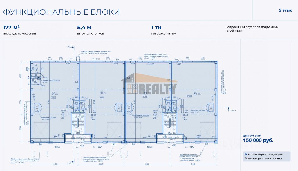 Нагрузка на пол: 5 тн (1 этаж), 1 тн (2 этаж).