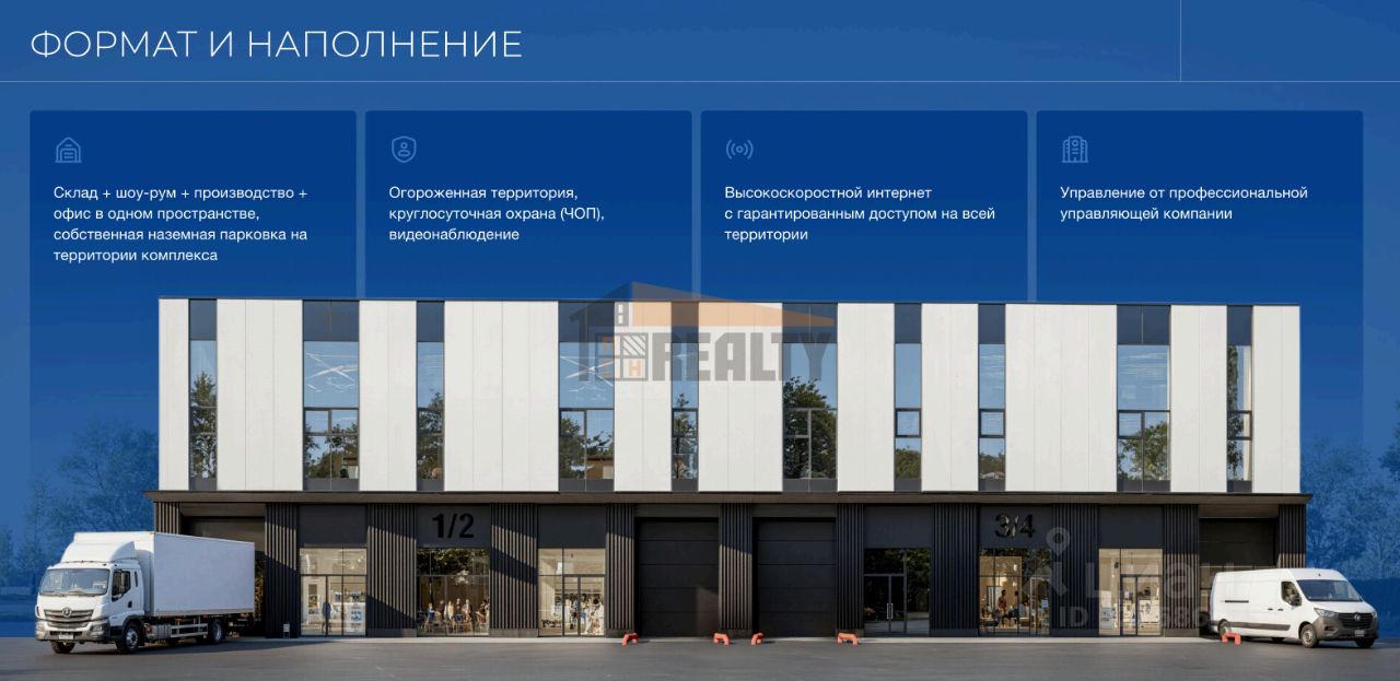 Cклад + шоу-рум + производство + офис в одном пространстве, собственная наземная парковка на территории комплекса. Идеально под инвестиции или собственный бизнес.