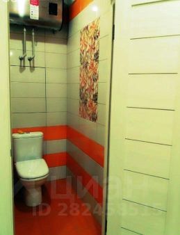 На большой прямоугольной кухне встроенные шкафы с доводчиками blum, варочная панель Bosh, а также есть духовка, вытяжка, большой холодильник LG и стиральная машина Ariston. В прихожей, коридоре и спальне размещены встроенные шкафы, выполненные на заказ под размеры помещений. Ванная комната и туалет отделаны плиткой в едином ярко-оранжевом стиле, оборудованы гарнитуром и просторной ванной 1,7м. В туалете размещен бойлер на 80л, что удобно в плановых отключениях горячей воды летом. Лоджия оборудована полками под хранение крупногабаритных предметов. Встроенная мебель остается покупателю.
