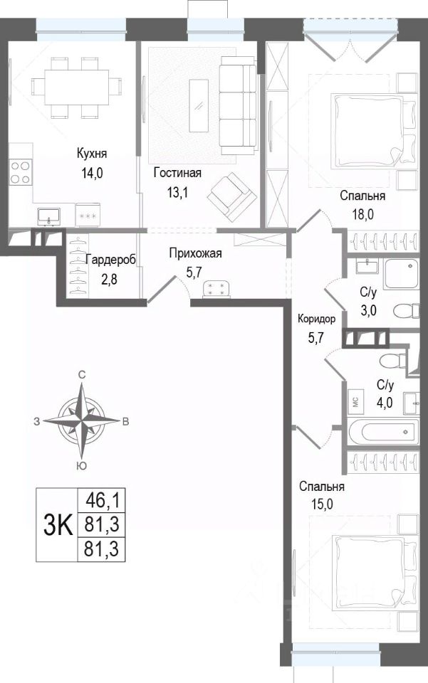 81,3 м²