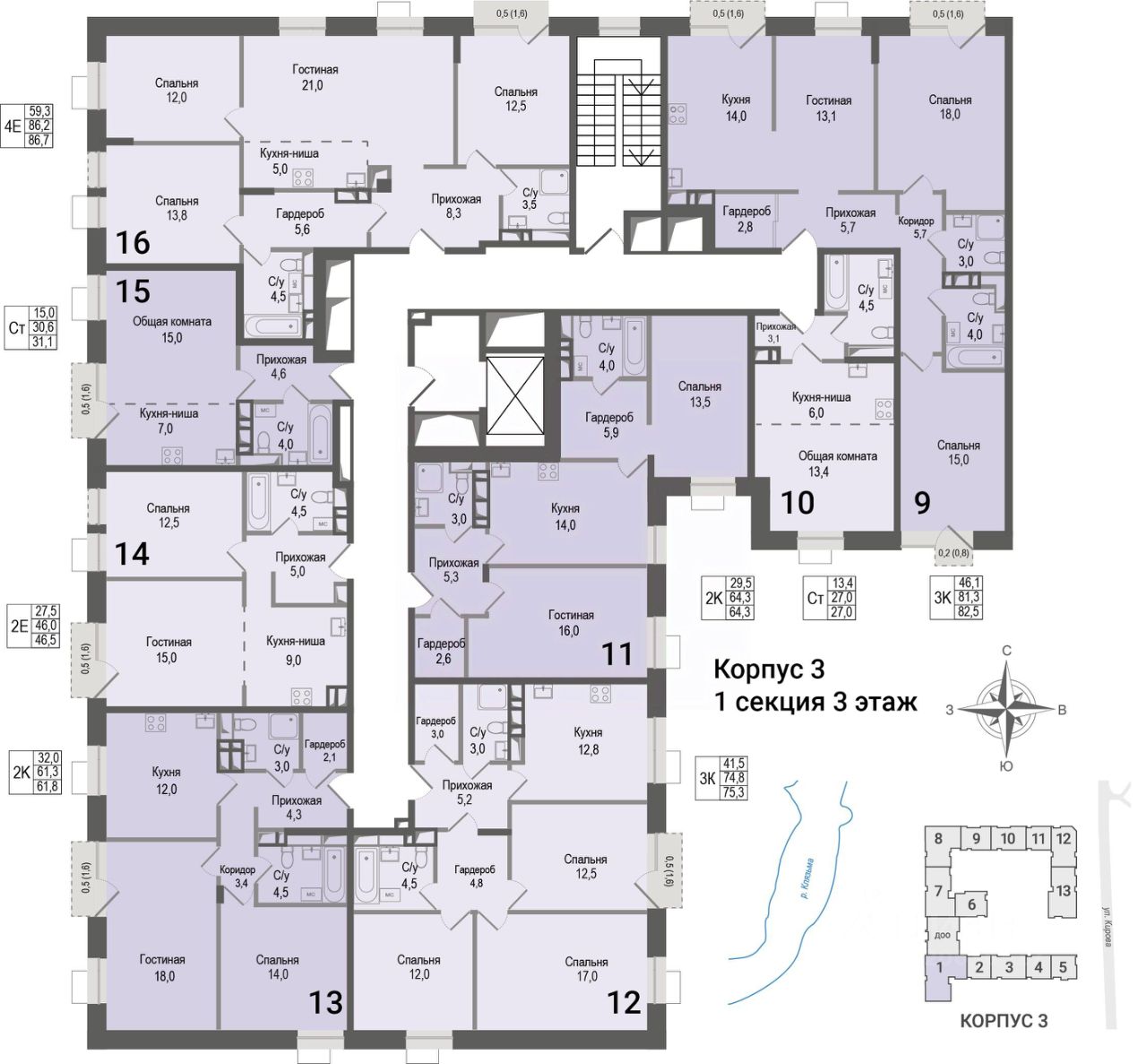 Продаётся студия в строящемся доме (Корпус 3), срок сдачи: II-кв. 2027, общей площадью 27 кв.м., на 3 этаже. ЖК "Киноквартал" , МО, г. Королев, мкр. Первомайский, ул. Солнечная, д. 2
