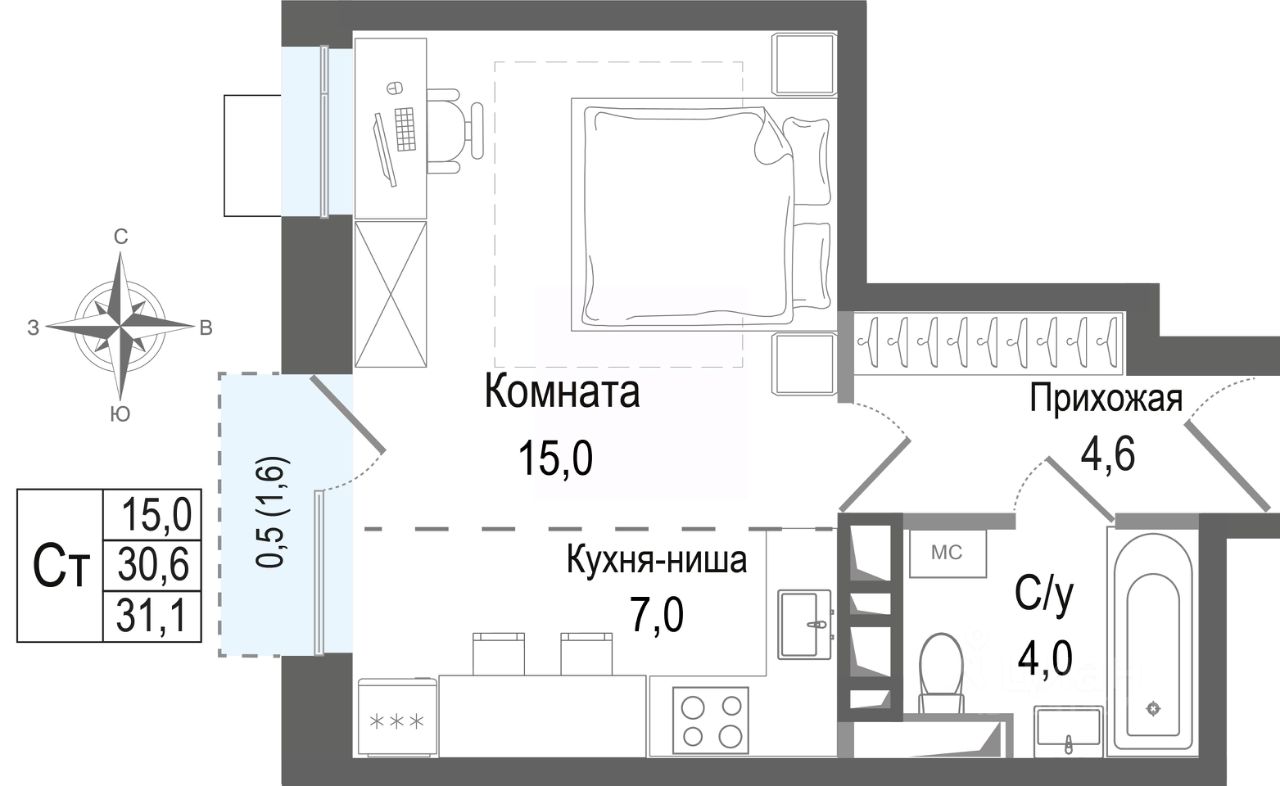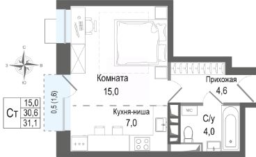 Продаётся студия в строящемся доме (Корпус 3), срок сдачи: II-кв. 2027, общей площадью 30.6 кв.м., на 5 этаже. ЖК "Киноквартал" , МО, г. Королев, мкр. Первомайский, ул. Солнечная, д. 2