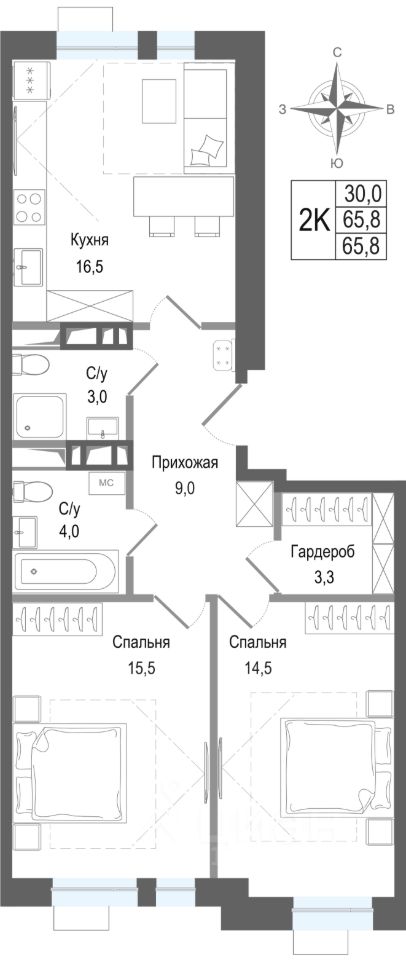 Продаётся 2-комнатная квартира в строящемся доме (Корпус 3), срок сдачи: II-кв. 2027, общей площадью 65.8 кв.м., на 2 этаже. ЖК "Киноквартал" , МО, г. Королев, мкр. Первомайский, ул. Солнечная, д. 2