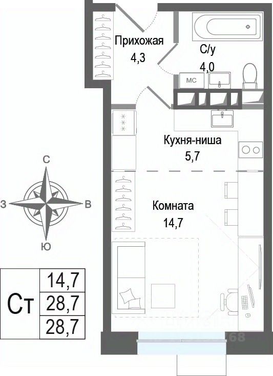 Продаётся студия в строящемся доме (Корпус 3), срок сдачи: II-кв. 2027, общей площадью 28.7 кв.м., на 2 этаже. ЖК "Киноквартал" , МО, г. Королев, мкр. Первомайский, ул. Солнечная, д. 2