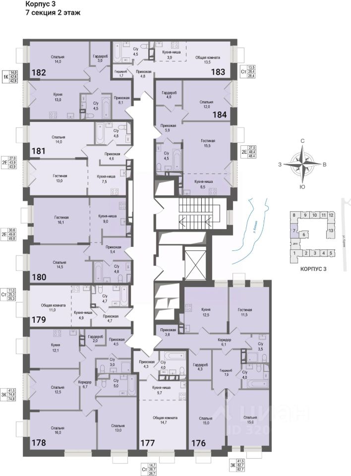 Продаётся 3-комнатная квартира в строящемся доме (Корпус 3), срок сдачи: II-кв. 2027, общей площадью 74.8 кв.м., на 2 этаже. ЖК "Киноквартал" , МО, г. Королев, мкр. Первомайский, ул. Солнечная, д. 2
