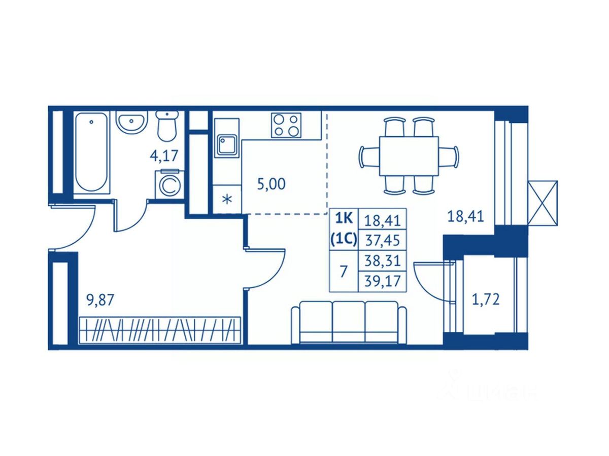 18,4 м²