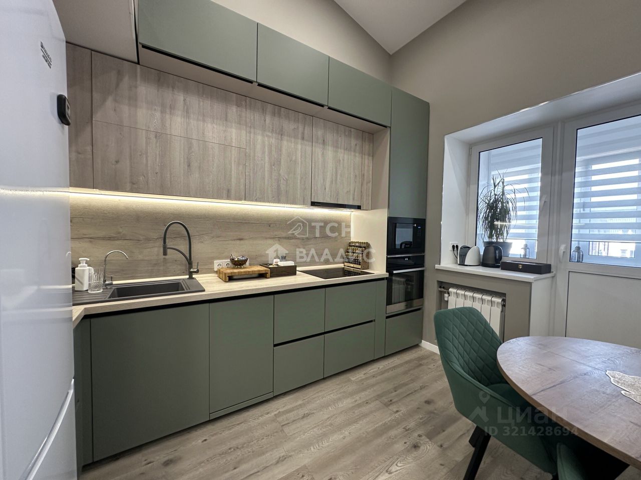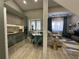Сделан качественный дизайнерский ремонт, на полу кварц-винил, санузлы в плитке, окна ПВХ. Кухня изготовлена по специальному заказу, крашеные фасады, встроенная техника: