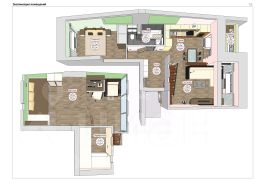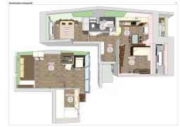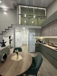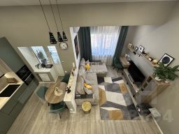 Общая площадь квартиры 70 метров (с учетом зоны лоджии и второго уровня). Просторная кухня-гостиная 27,2 метров, светлая спальня 11,5 метров, на 2 уровне уютная детская комната - 14 метров c гардеробной - 3,4 метра.