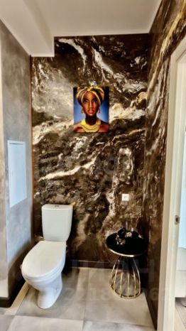 Совмещенный санузел с современной отделкой и всей необходимой сантехникой.