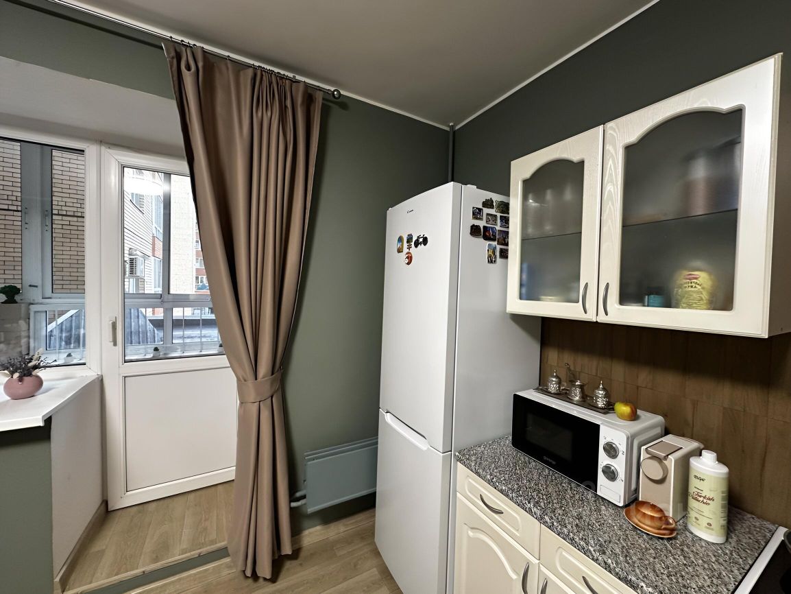 В квартире выполнен качественный косметический ремонт во входной зоне и кухне. Комната светлая и просторная, кухня правильной формы и укомплектована мебелью. Удобный санузел с местом для стиральной машины и хранения. Широкий балкон подходит как для отдыха, так и для занятий спортом.