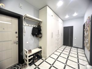 Продается просторная 2-комнатная квартира по адресу: МО, г. Королев, ул. Советская, дом 69, расположена на 9-м этаже нового современного 17-ти этажного дома в активно развивающемся ЖК "Ривер Парк", который расположен на берегу реки Клязьма, в экологически чистом районе города. Общая площадь квартиры 60 кв. м. (по ЕГРН без учета всей лоджии), просторная кухня 12 кв. м. с выходом на застекленную утепленную лоджию, 2 изолированные комнаты 13,5 кв. м. и 16,5 кв.м., коридор 13 кв. м., 2 с/у. Квартира очень теплая, светлая, отличный вид из окон. В квартире выполнен качественный ремонт, теплые полы уложены в с/у, на лоджии, в коридоре и на кухне, новым владельцам остается кухонный гарнитур со встроенной техникой, остальная мебель и техника по договоренности.