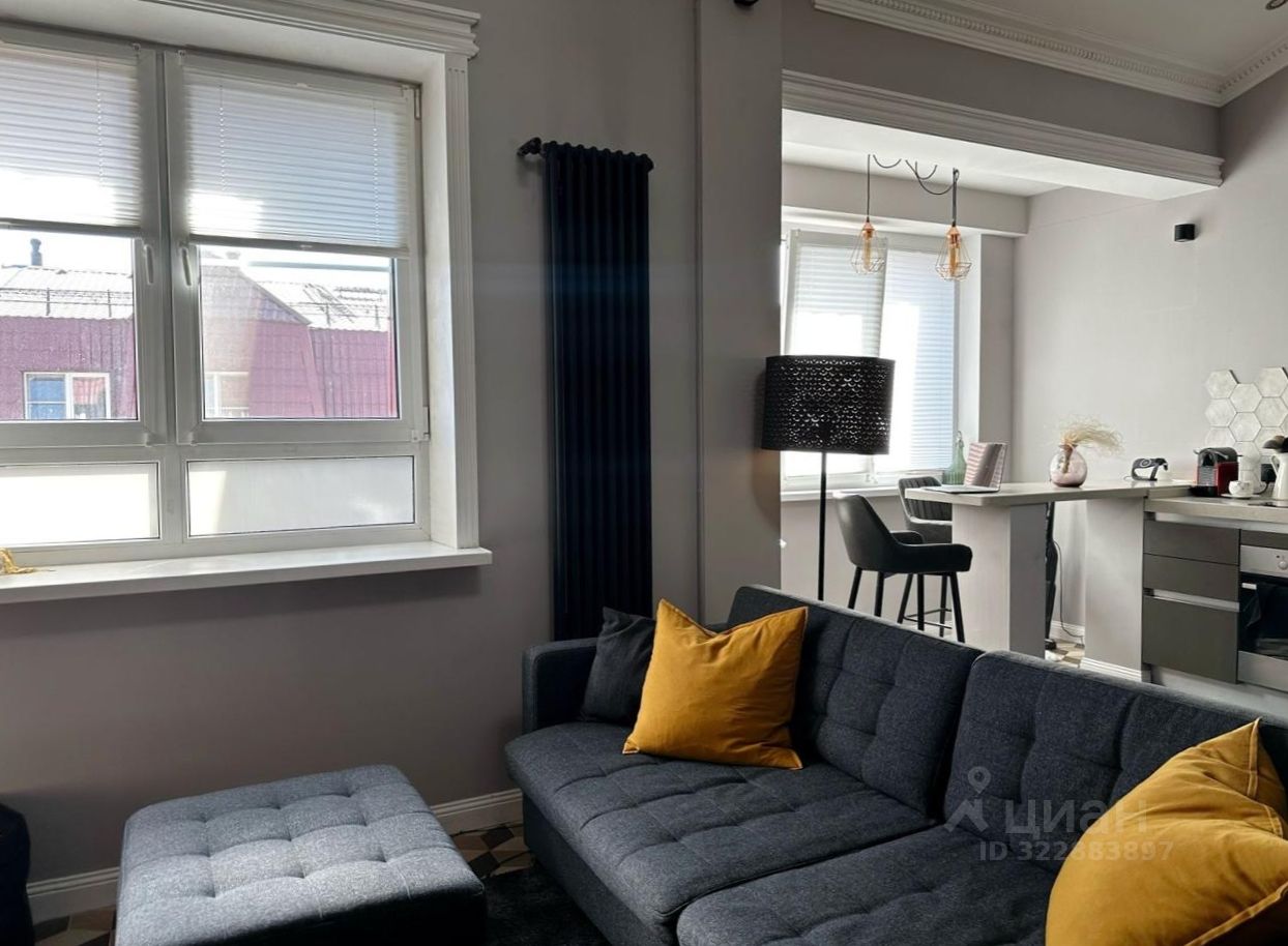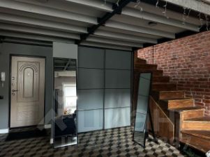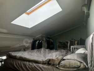Необычная квартира двухуровневой планировки с максимальным количеством света, два больших окна на первом уровне и мансардное окно на втором.