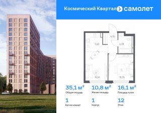 Строим кварталы для жизни с заботой о будущем. Предлагается 1-комнатная квартира комфорт-класса 35,14 кв.м в корпусе 1 на 12 этаже, в ЖК "Космический Квартал"