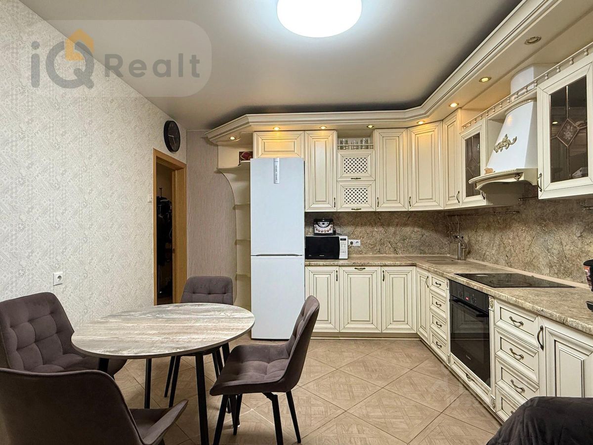 В квартире установлены: теплые полы, электрика разведена с установкой электрощита с автоматами, кондиционер. Дорогая кухня из массива дерева.