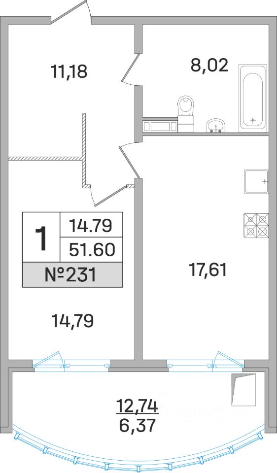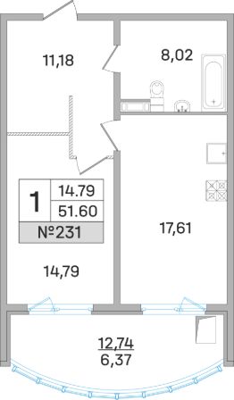 Продаётся 1 - комнатная квартира в готовом доме (Калинина, 11), срок сдачи: Дом сдан, общей площадью 51.50 кв.м., на 7 этаже.