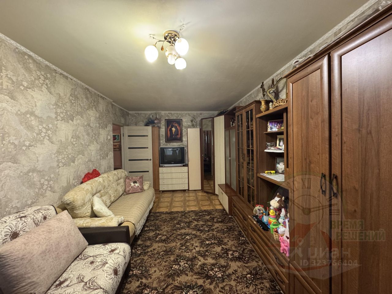 Общая площадь квартиры составляет 32,3 м2, комната 19 м2, кухня 6 м2, совмещенный санузел.