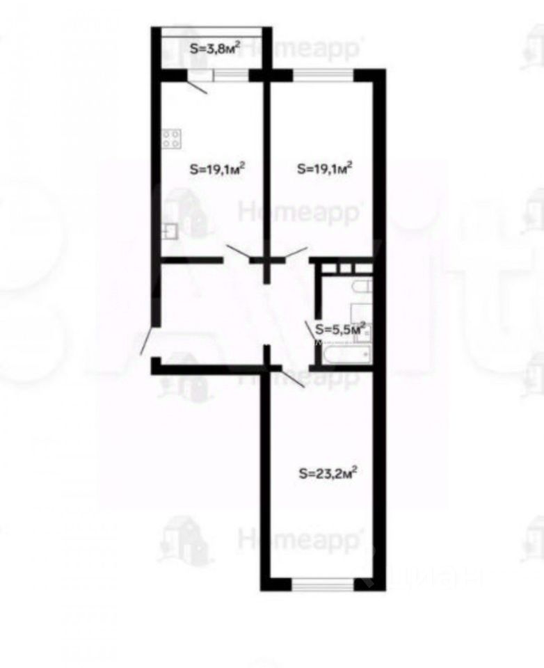 Квартира по праву может считаться одной из лучших в городе по планировочному решению!! Планировка сочетает в себе большую кухню-гостиную 19 м2 с выходом на застекленную лоджию 3,8 м2, просторные изолированные комнаты 23,5 и 19 м2, совмещённый санузел 5,5 м, высота потолков 2,7 м, удобный функциональный холл-прихожая, в котором при желании можно сделать гардеробную комнату. Квартира с видом на две стороны.