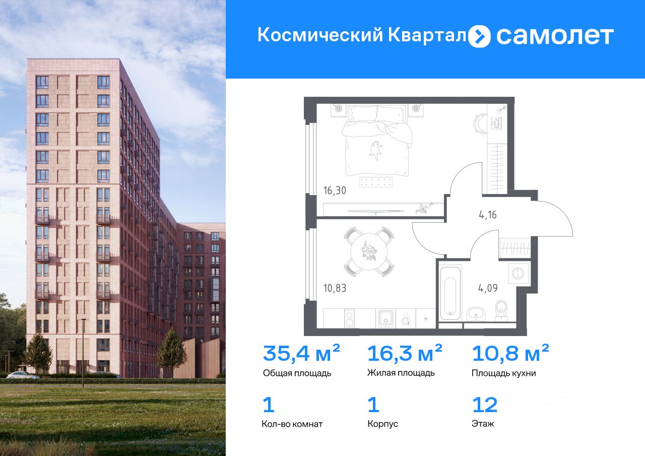 Строим кварталы для жизни с заботой о будущем. Предлагается 1-комнатная квартира комфорт-класса 35,38 кв.м в корпусе 1 на 12 этаже, в ЖК "Космический Квартал" Квартира с чистовой отделкой. Доступность дополнительных опций уточняйте у застройщика. Приобрести квартиру возможно по специальным акциям от застройщика, с текущими условиями акций можно ознакомиться в блоке "Акций". Цена динамическая и может отличаться, уточняйте актуальность у застройщика. "Космический Квартал" находится в Московской области, в Королеве. В Королеве находятся несколько парков и лесов, а реки Клязьма и Яуза окружают наукоград с двух сторон. Путь до Москвы будет быстрым и удобным: до МКАД — 20 минут на автомобиле, а до ж/д станция Болшево - 8 минут на авто или 20 минут пешком. В проекте предусмотрены собственный детский сад, многоуровневые паркинги, а также магазины, спортзал, ресторан и аптеки на первых этажах домов. Неподалеку от квартала находятся городские гимназии 3 и "Ковчег" и лицей 4. "Космический Квартал" — это 3 монолитных дома высотой 12-17 этажей. Во внутреннем приватном дворе-парке будут детские и спортивные площадки. А для занятий спортом будут обустроены воркаут-пространства. Все подъезды — с безбарьерным входом. В лобби есть помещения для велосипедов и колясок. На техническом этаже — индивидуальные кладовые для сезонных вещей. Продуманные планировки от небольших студий до просторных 4-комнатных квартир с гардеробной, постирочной и гостевым санузлом. Квартиры сдаются как с отделкой, так и без нее.