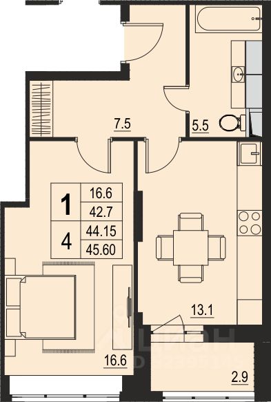 Продаётся 1-комнатная квартира в сданном доме (Корпус 3, 2 очередь), срок сдачи: IV-кв. 2022, общей площадью 44.15 кв.м., на 15 этаже. Расположение, транспортная доступность
