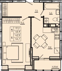 Продаётся 1-комнатная квартира в сданном доме (Корпус 9, 2 очередь), срок сдачи: IV-кв. 2023, общей площадью 42.5 кв.м., на 5 этаже. Расположение, транспортная доступность