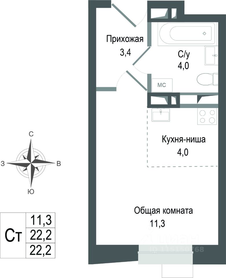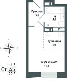 Продаётся студия в строящемся доме (Корпус 2), срок сдачи: II-кв. 2027, общей площадью 22.2 кв.м., на 5 этаже. ЖК "Киноквартал" , МО, г. Королев, мкр. Первомайский, ул. Солнечная, д. 2