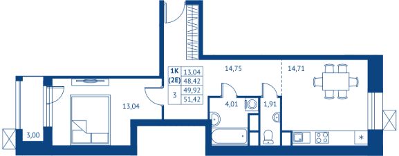 Продаётся 1-комнатная квартира в строящемся доме (Дом 3), срок сдачи: II-кв. 2028, общей площадью 48.42 кв.м., на 2 этаже. Жилой комплекс "Поколение Первых" - новый проект от ГК "Профи Инвест", осуществляющей деятельность на рынке жилой недвижимости более 15 лет (построено более 1 млн. кв. метров жилья).