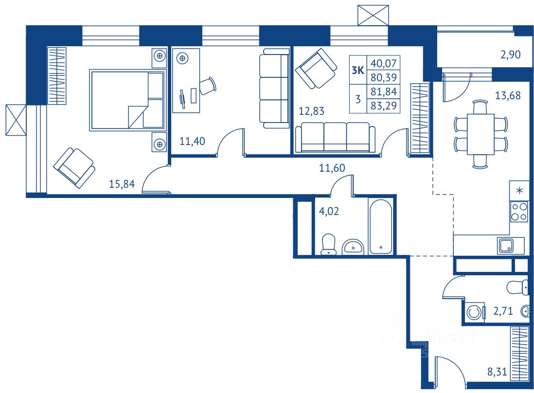 Продаётся 3-комнатная квартира в строящемся доме (Дом 1), срок сдачи: II-кв. 2028, общей площадью 80.39 кв.м., на 2 этаже. Жилой комплекс "Поколение Первых" - новый проект от ГК "Профи Инвест", осуществляющей деятельность на рынке жилой недвижимости более 15 лет (построено более 1 млн. кв. метров жилья).