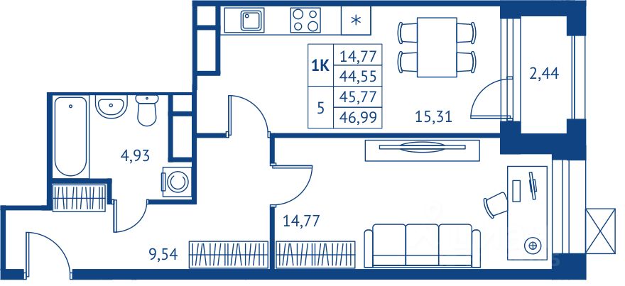 Продаётся 1-комнатная квартира в строящемся доме (Дом 1), срок сдачи: II-кв. 2028, общей площадью 44.55 кв.м., на 6 этаже. Жилой комплекс "Поколение Первых" - новый проект от ГК "Профи Инвест", осуществляющей деятельность на рынке жилой недвижимости более 15 лет (построено более 1 млн. кв. метров жилья).