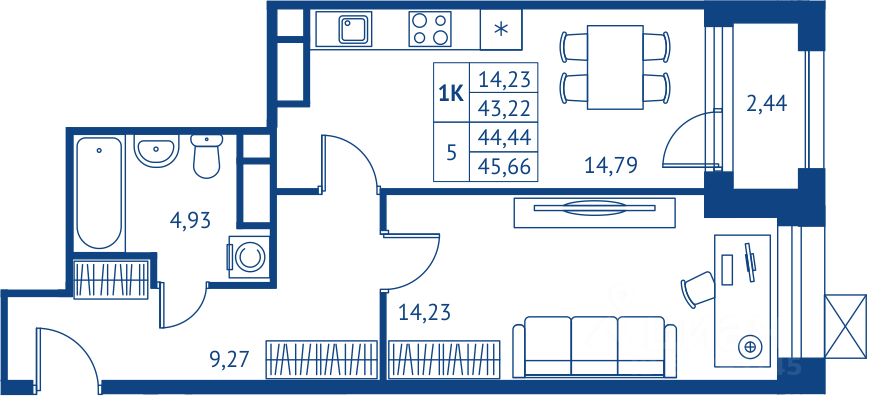 Продаётся 1-комнатная квартира в строящемся доме (Дом 1), срок сдачи: II-кв. 2028, общей площадью 43.22 кв.м., на 7 этаже. Жилой комплекс "Поколение Первых" - новый проект от ГК "Профи Инвест", осуществляющей деятельность на рынке жилой недвижимости более 15 лет (построено более 1 млн. кв. метров жилья).
