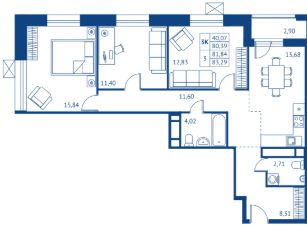 Продаётся 3-комнатная квартира в строящемся доме (Дом 1), срок сдачи: II-кв. 2028, общей площадью 80.39 кв.м., на 8 этаже. Жилой комплекс "Поколение Первых" - новый проект от ГК "Профи Инвест", осуществляющей деятельность на рынке жилой недвижимости более 15 лет (построено более 1 млн. кв. метров жилья).