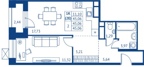 Продаётся 1-комнатная квартира в строящемся доме (Дом 1), срок сдачи: II-кв. 2028, общей площадью 45.16 кв.м., на 12 этаже. Жилой комплекс "Поколение Первых" - новый проект от ГК "Профи Инвест", осуществляющей деятельность на рынке жилой недвижимости более 15 лет (построено более 1 млн. кв. метров жилья).