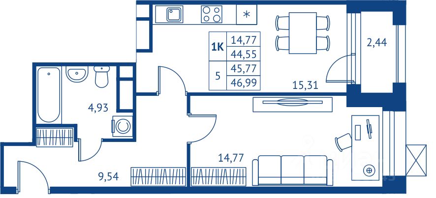 Продаётся 1-комнатная квартира в строящемся доме (Дом 1), срок сдачи: II-кв. 2028, общей площадью 44.55 кв.м., на 12 этаже. Жилой комплекс "Поколение Первых" - новый проект от ГК "Профи Инвест", осуществляющей деятельность на рынке жилой недвижимости более 15 лет (построено более 1 млн. кв. метров жилья).