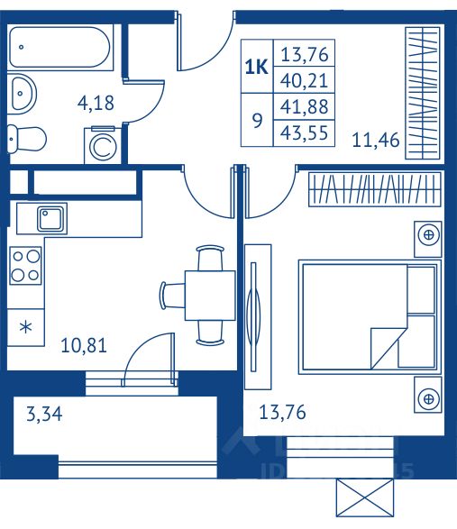 Продаётся 1-комнатная квартира в строящемся доме (Дом 1), срок сдачи: II-кв. 2028, общей площадью 40.21 кв.м., на 12 этаже. Жилой комплекс "Поколение Первых" - новый проект от ГК "Профи Инвест", осуществляющей деятельность на рынке жилой недвижимости более 15 лет (построено более 1 млн. кв. метров жилья). Жилой комплекс располагается в центре города Королёв возле ТЦ "Глобус", рядом с выездом на скоростное Ярославское шоссе. В составе комплекса 10 домов переменной этажности, размещенных на стилобатной части, в которой расположен двухуровневый паркинг на 1 166 машино-мест и 124 кладовых помещения. На первых этажах будут расположены коммерческие площади под ритейл и необходимые жителям сервисы: ФОК с бассейном, сауной и спа-зоной, культурно-досуговый центр, офисные помещения, магазины, аптека, кафе, банки, помещения бытового обслуживания. Проектом предусмотрено строительство детского сада на 210 мест, а также строительство пристройки на 450 мест в средней общеобразовательной школе 5, находящейся по адресу: Октябрьский бульвар, 33. Район застройки жилого комплекса "Поколение первых" характеризуется развитой инфраструктурой, что позволит резидентам проекта бизнес-класса #вКоролевеЖить максимально комфортно, имея все "под рукой" и в шаговой доступности. Рядом с жилым комплексом находятся детские сады и школы, театр юного зрителя, городские парки и скверы, лыжная трасса и велосипедная дорожка. Сам город Королёв, находится к северо-востоку от Москвы, в 23 км от центра, в 6 км от МКАД и в 30 минутах езды на автомобиле до ЦКАД. По данным статистики, примерно 67% жителей города имеют высшее или среднетехническое образование. Сегодня Наукоград Королёв - это научно-технический центр, обладающий огромным потенциалом к дальнейшему развитию инфраструктуры, обеспечивающей комфортное проживание населения, его занятость и интеллектуальное развитие.