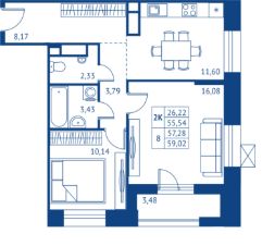 Продаётся 2-комнатная квартира в строящемся доме (Дом 1), срок сдачи: II-кв. 2028, общей площадью 55.54 кв.м., на 15 этаже. Жилой комплекс "Поколение Первых" - новый проект от ГК "Профи Инвест", осуществляющей деятельность на рынке жилой недвижимости более 15 лет (построено более 1 млн. кв. метров жилья).