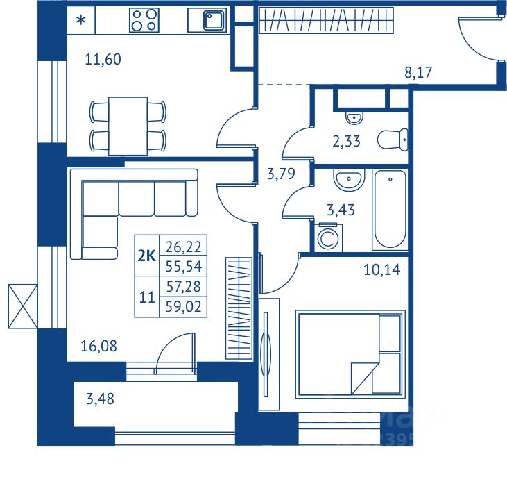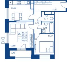 Продаётся 2-комнатная квартира в строящемся доме (Дом 1), срок сдачи: II-кв. 2028, общей площадью 55.54 кв.м., на 15 этаже. Жилой комплекс "Поколение Первых" - новый проект от ГК "Профи Инвест", осуществляющей деятельность на рынке жилой недвижимости более 15 лет (построено более 1 млн. кв. метров жилья).