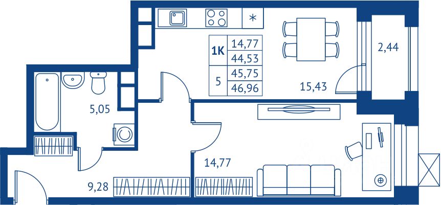 Продаётся 1-комнатная квартира в строящемся доме (Дом 2), срок сдачи: II-кв. 2028, общей площадью 44.53 кв.м., на 4 этаже. Жилой комплекс "Поколение Первых" - новый проект от ГК "Профи Инвест", осуществляющей деятельность на рынке жилой недвижимости более 15 лет (построено более 1 млн. кв. метров жилья).