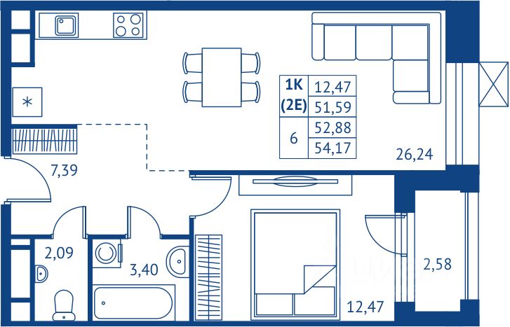 Продаётся 1-комнатная квартира в строящемся доме (Дом 2), срок сдачи: II-кв. 2028, общей площадью 51.59 кв.м., на 4 этаже. Жилой комплекс "Поколение Первых" - новый проект от ГК "Профи Инвест", осуществляющей деятельность на рынке жилой недвижимости более 15 лет (построено более 1 млн. кв. метров жилья).