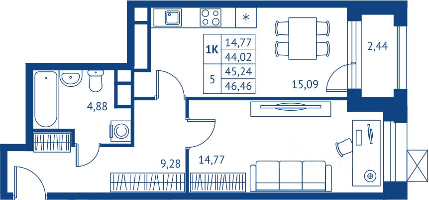 Продаётся 1-комнатная квартира в строящемся доме (Дом 2), срок сдачи: II-кв. 2028, общей площадью 44.02 кв.м., на 8 этаже. Жилой комплекс "Поколение Первых" - новый проект от ГК "Профи Инвест", осуществляющей деятельность на рынке жилой недвижимости более 15 лет (построено более 1 млн. кв. метров жилья).