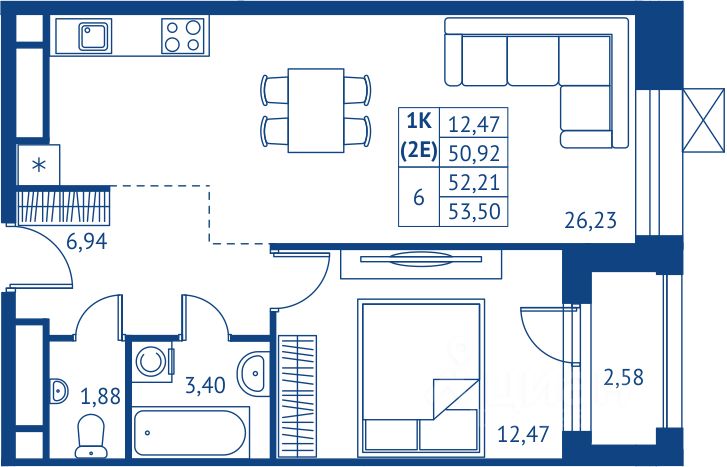 Продаётся 1-комнатная квартира в строящемся доме (Дом 2), срок сдачи: II-кв. 2028, общей площадью 50.92 кв.м., на 8 этаже. Жилой комплекс "Поколение Первых" - новый проект от ГК "Профи Инвест", осуществляющей деятельность на рынке жилой недвижимости более 15 лет (построено более 1 млн. кв. метров жилья).