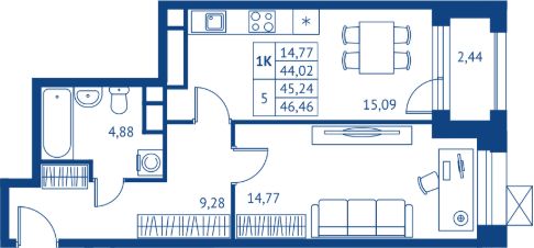 Продаётся 1-комнатная квартира в строящемся доме (Дом 2), срок сдачи: II-кв. 2028, общей площадью 44.02 кв.м., на 21 этаже. Жилой комплекс "Поколение Первых" - новый проект от ГК "Профи Инвест", осуществляющей деятельность на рынке жилой недвижимости более 15 лет (построено более 1 млн. кв. метров жилья).