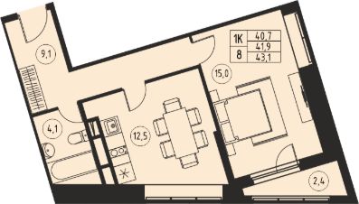 Продаётся 1-комнатная квартира в сданном доме (Корпус 2.2, 2 очередь), срок сдачи: III-кв. 2025, общей площадью 41.9 кв.м., на 15 этаже. Расположение, транспортная доступность