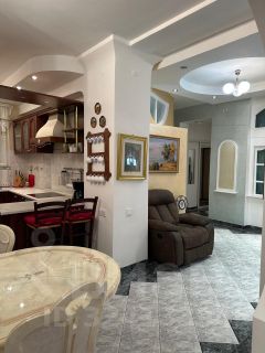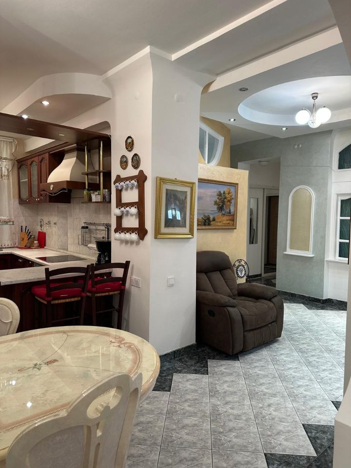 (97) кв. метров с индивидуальным архитектурным решением, двумя эркерами, что дает больше света и уюта. Сделан шикарный качественный ремонт, пол с подогревом, окна со стеклопакетами, кондиционер, видеодомофон, зону гостиной и кабинета разделяет столешница и камин из редкого мрамора.