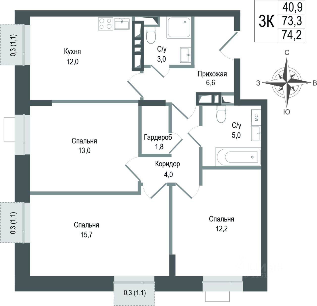 73,3 м²