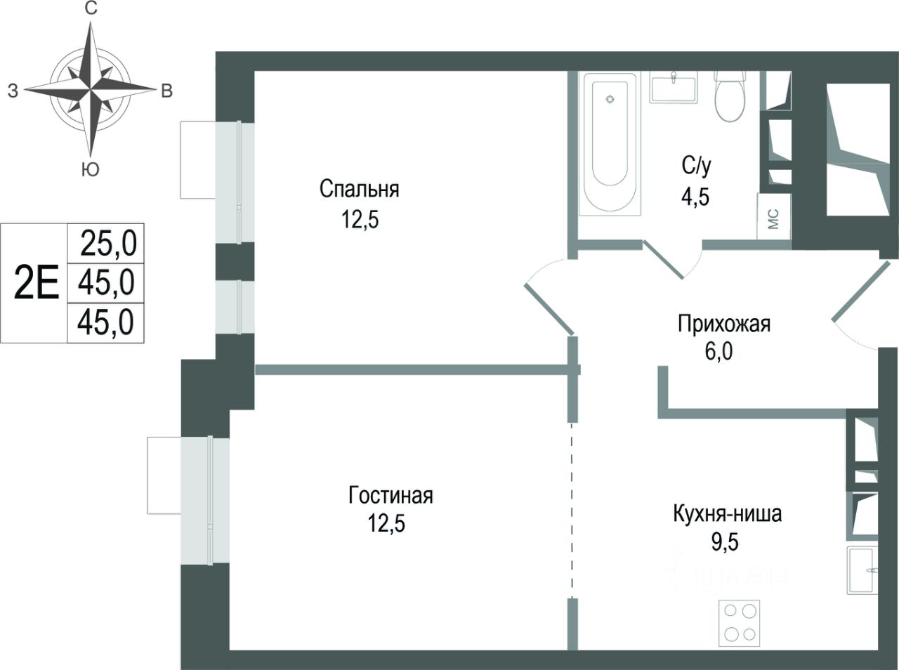 45 м²