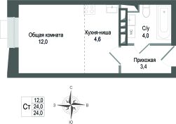 Продаётся студия в строящемся доме (Корпус 2), срок сдачи: II-кв. 2027, общей площадью 24 кв.м., на 6 этаже. ЖК "Киноквартал" , МО, г. Королев, мкр. Первомайский, ул. Солнечная, д. 2