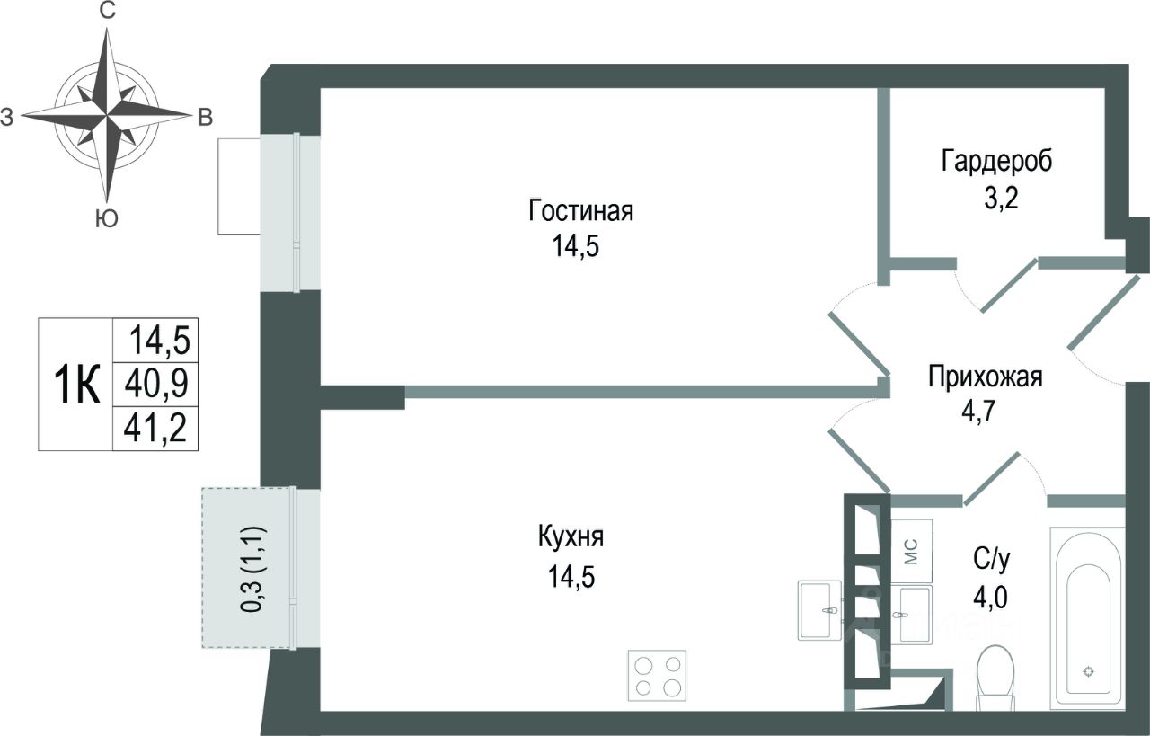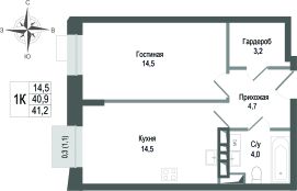 Продаётся 1-комнатная квартира в строящемся доме (Корпус 2), срок сдачи: II-кв. 2027, общей площадью 40.9 кв.м., на 6 этаже. ЖК "Киноквартал" , МО, г. Королев, мкр. Первомайский, ул. Солнечная, д. 2