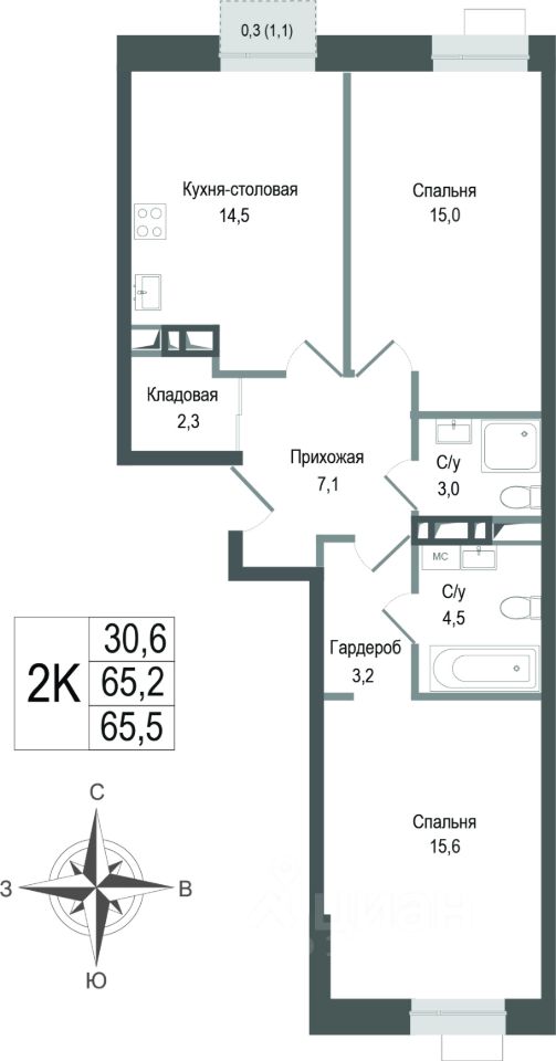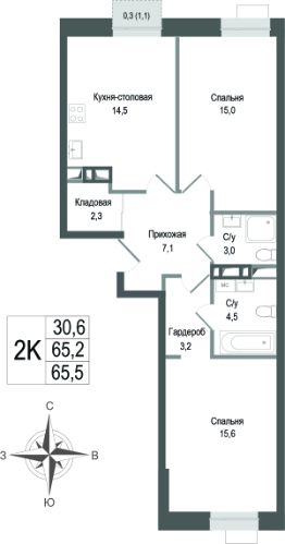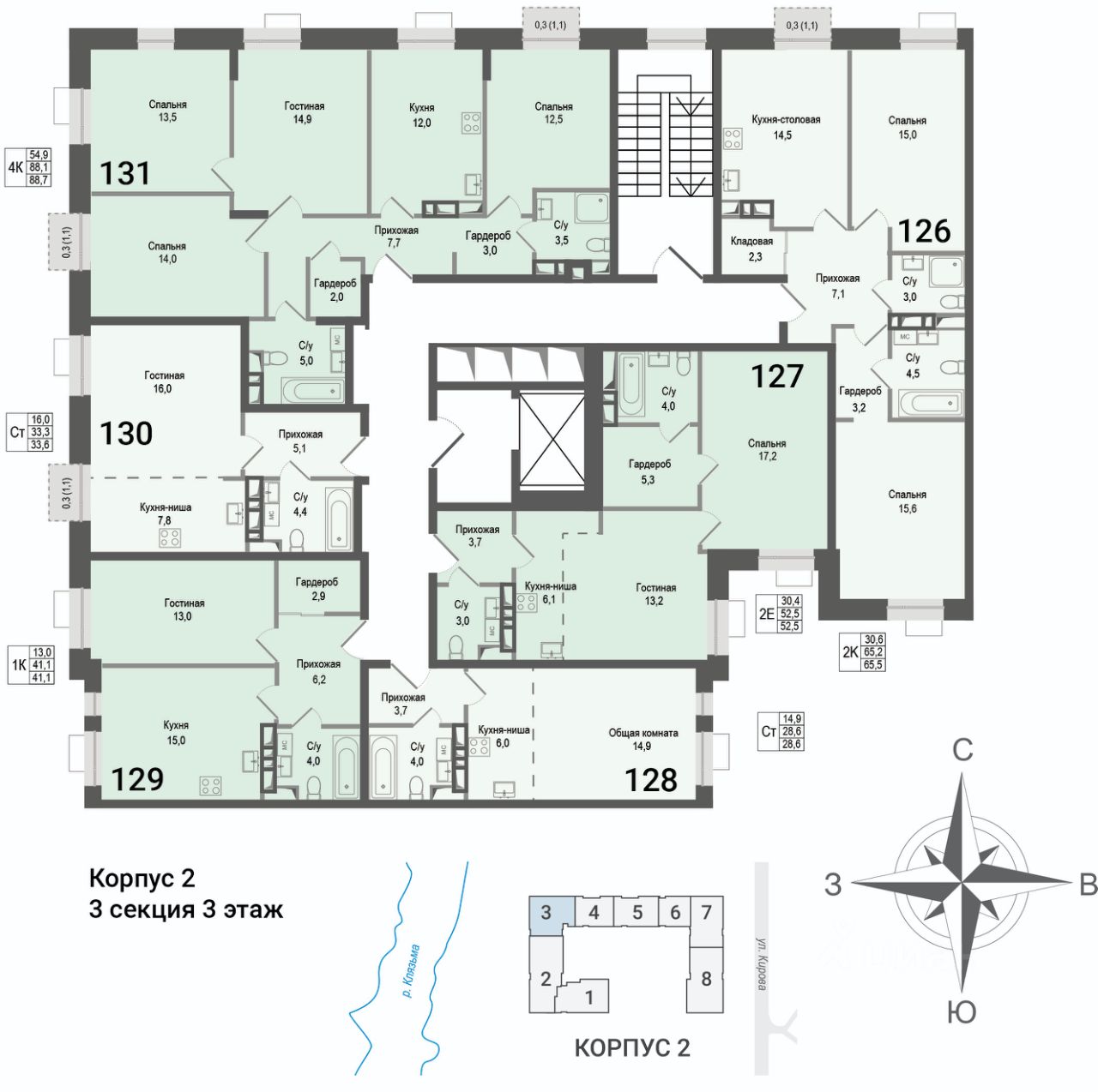 Продаётся 2-комнатная квартира в строящемся доме (Корпус 2), срок сдачи: II-кв. 2027, общей площадью 65.2 кв.м., на 3 этаже. ЖК "Киноквартал" , МО, г. Королев, мкр. Первомайский, ул. Солнечная, д. 2